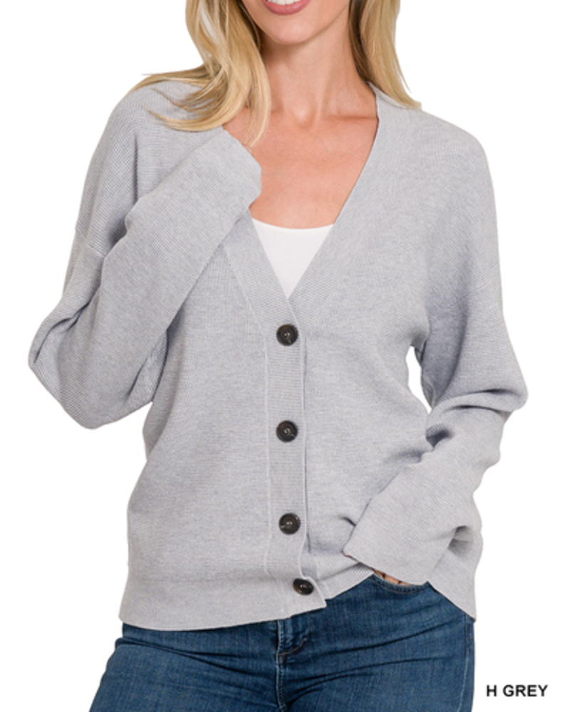 DROP SHOULDER BUTTON FRONT VISCOSE SWEATER CARDIGAN