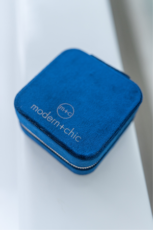 Your gorgeous accessories deserve an equally stunning jewelry case! This luxe velvet jewelry box is sure to lend an elevated feel to your travels or your dresser at home. The Eloise features three necklace hooks, a mirror, six earring holes, ring slots, and an adjustable, removable tabs section for extra organization options.