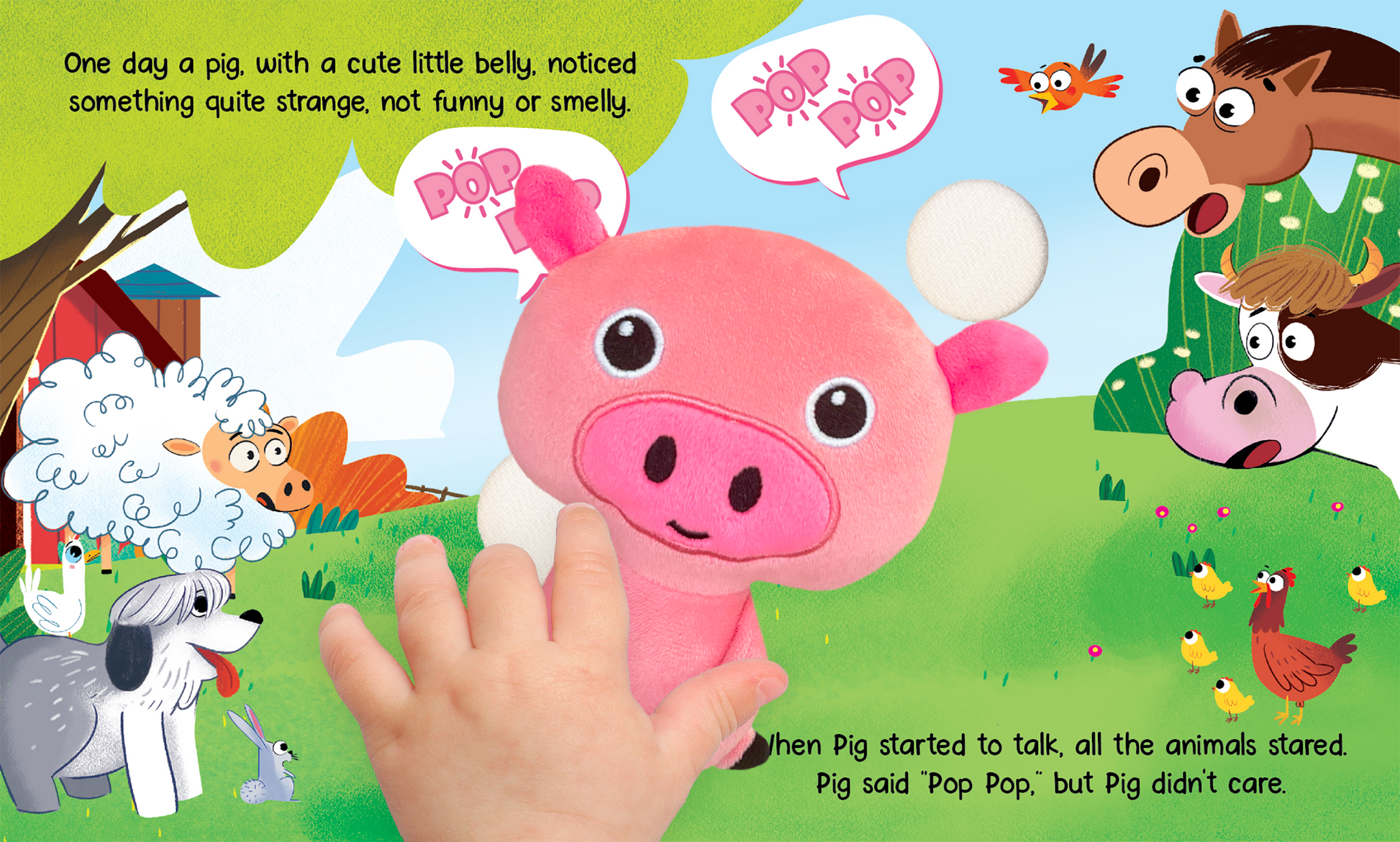 Discover the joy of reading and playing with our adorable board book, featuring an attached cuddly plush pig character that sticks right to the cover. Little ones can also affix the little pig plush to each page as they read along. Children will enjoy reading along with these farm friends as they learn a lesson in being yourself.