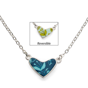 - Handcrafted polymer clay inlays nestled in a double-sided heart shaped bezel frame