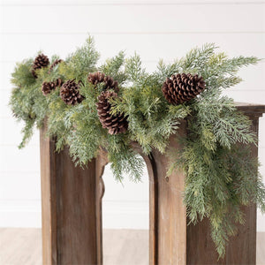 Audrey's Home & Gift presents the Cedar Greenery with Pinecones Garland. This 72" long garland, packaged in a set of two, is a perfect blend of plastic and metal. Ideal for every season, it adds a touch of nature-inspired beauty to your home or any festive event. Crafted with attention to detail, it echoes our brand's dedication to exceptional product development. Enjoy the beauty of this beautiful garland.