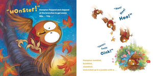 tells the funny story of Hampton the owl and Figgy the pig as they work together to fend off a scary-sounding monster that turns out to be someone friendly and ready to play;