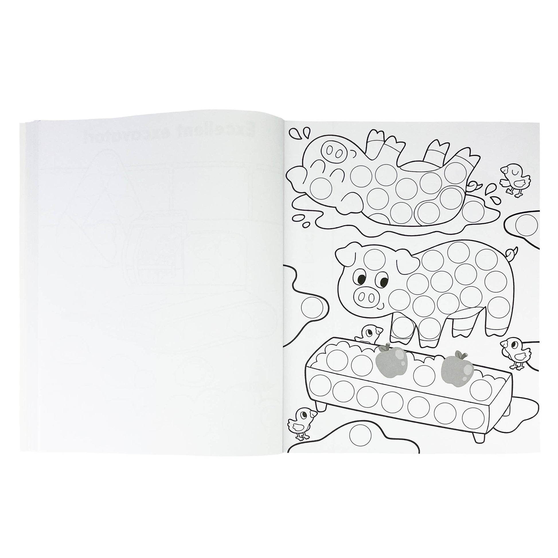Join John Deere down on the farm for some dot marker coloring fun! With this activity book, toddlers and young children can practice their eye-hand coordination and fine motor skills while creatively coloring farm animals, active kids, and John Deere tractors galore! Five pages of stickers are included—one of which can be colored with dot markers!