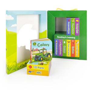 Discover a world of colors, shapes, numbers, and more early learning content with the help of favorite John Deere machines! My Little Learner Library includes 12 miniature board books perfectly housed in a sturdy take-along case with a convenient rope handle. Perfect for tractor loving toddlers with little hands and curious minds.