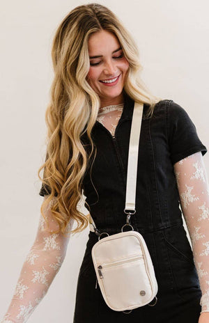 You'll feel empowered to take on whatever the day brings with this new crossbody as your companion! This multi-wear crossbody bag is convenient, cute, and sized to fit everything you need when you're on the go. The outside features two pockets ideal for your smaller essentials (think keys, lip gloss, and gum). Adjusts from a crossbody, to a belt bag, to a fanny pack, and back again. Our most convertible bag yet. Perfect for adventures indoors or outdoors!