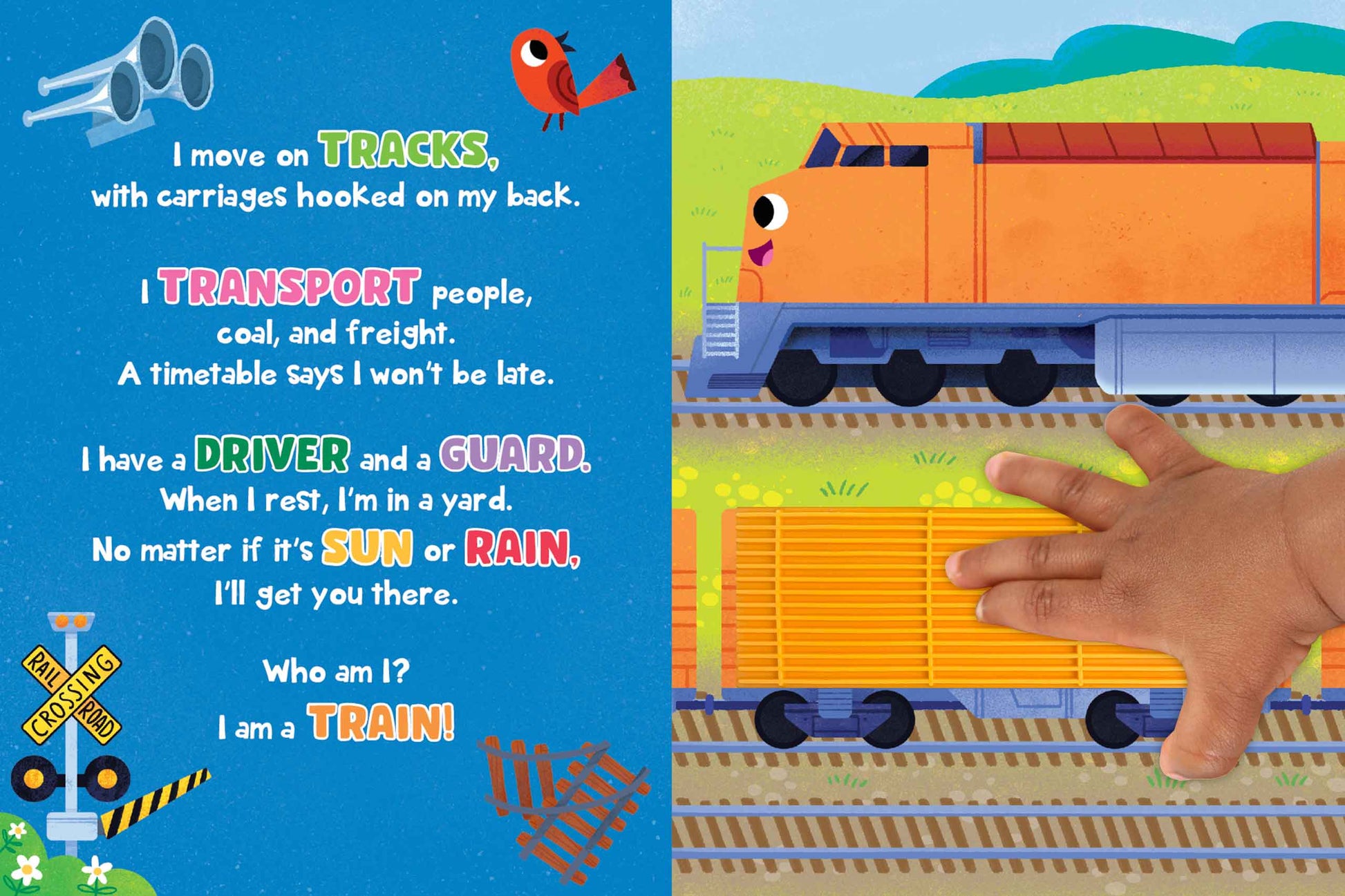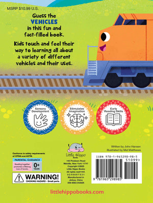 Guess the vehicles in this fun and fact-filled book. Kids touch and feel their way to learning all about a variety of different vehicles and their uses.