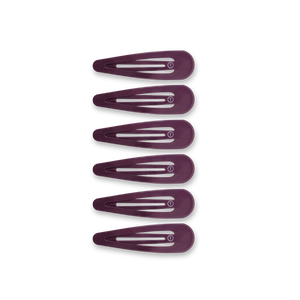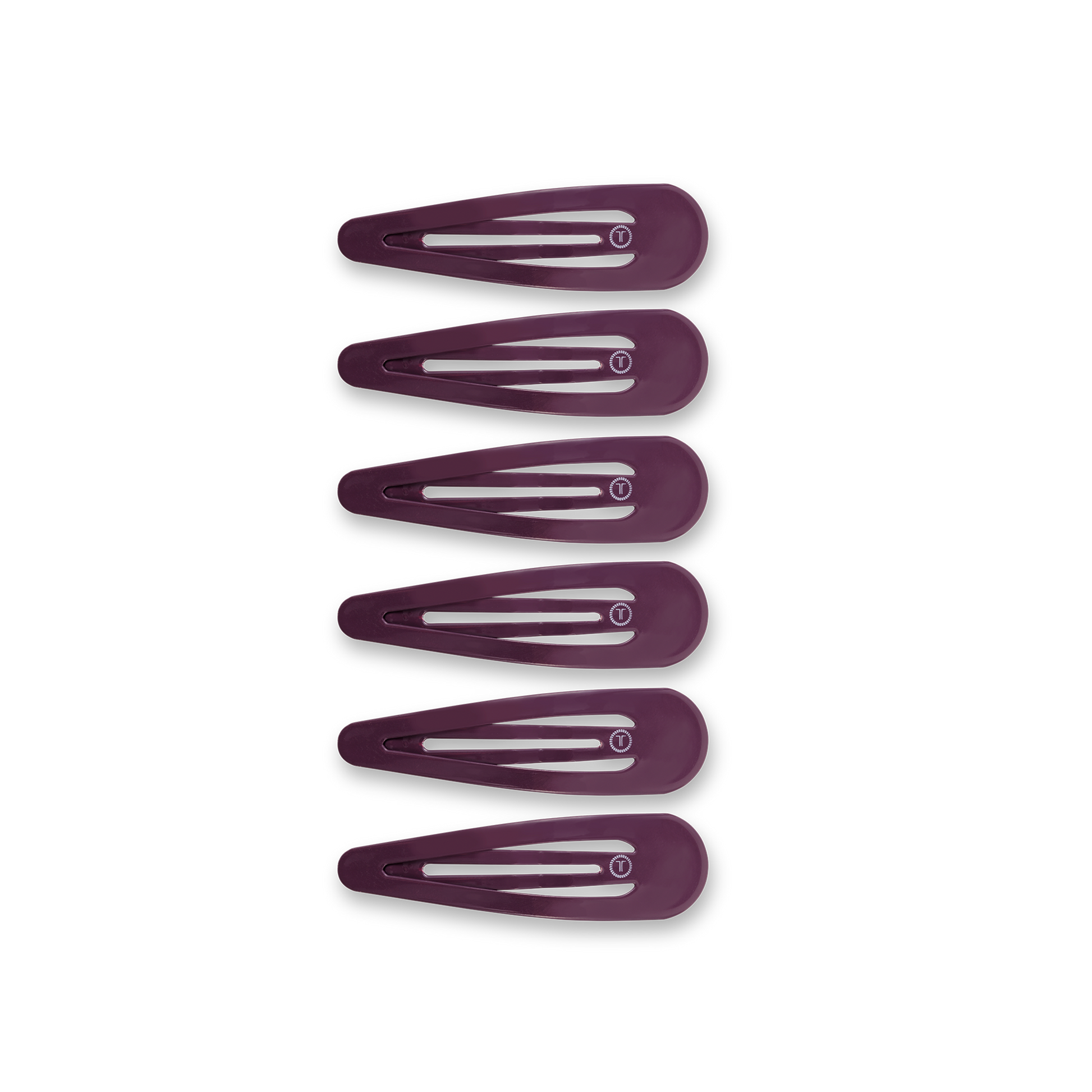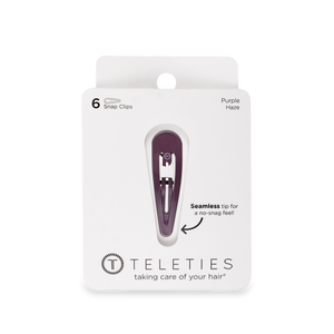 TELETIES Purple Haze Snap Clips (6Ct) in Purple offer a secure seamless tip for a no snag feel. Perfect for all hair types, these stylish barrettes provide a gentle yet firm hold, whether you're styling or simply pulling back strands. Available in a range of colors, TELETIES Snap Clips combine functionality with flair, ensuring your hair stays put all day long.