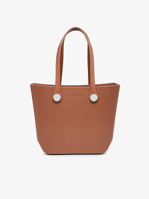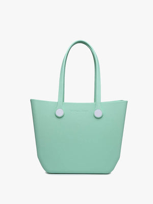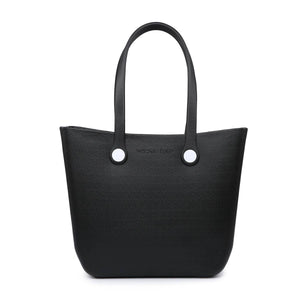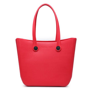 Vira Versa Tote -Description: Best-selling style! EVA tote bag designed for versatility. -Material: EVA rubber Features: -Lightweight, durable, and waterproof construction. -Washable interior for easy cleaning. -Removable straps for customizable styling. -Designed to be paired with a set of interchangeable straps (sold separately). - Dimensions: -Length: 15 Inches -Height:11.5 Inches -Depth: 5.5 Inches