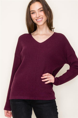 MINI WAFFLE, V-NECK, CENTER SEAMED, LONG SLEEVE, PULLOVER SWEATER