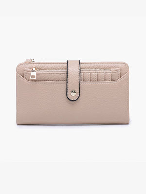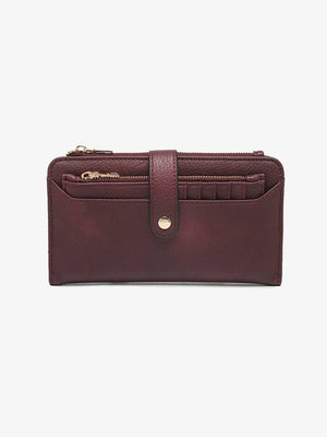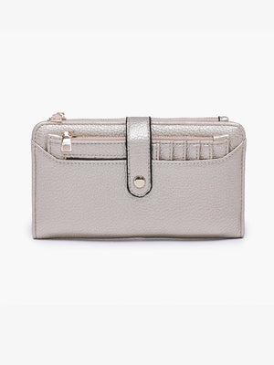 This Snap Wallet with Removable Cardholder offers versatility and sleek organization in a compact silhouette. Made from vegan leather and accented with gold-tone hardware, this wallet features a detachable cardholder for grab-and-go convenience, making it a stylish and functional everyday essential.