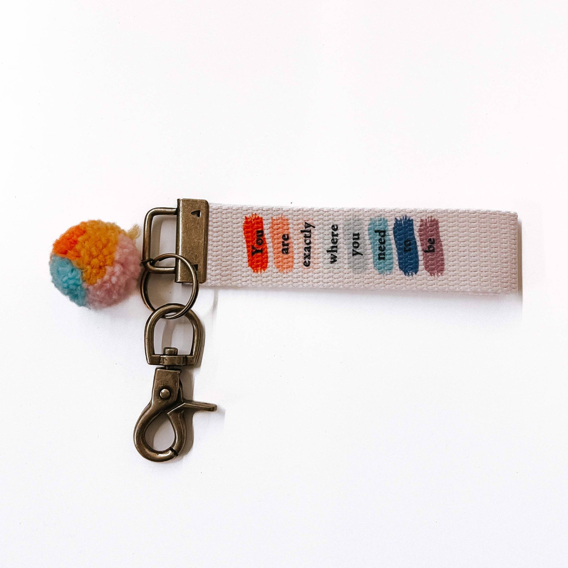 These Words to Live By Canvas Keychains are a fun and trendy accessory to add to your keys, purses, totes, like our new Jute bags, and backpacks! These keychains are high-quality printed cotton canvas. Comes in five design options. Every design has its own unique puffball included!