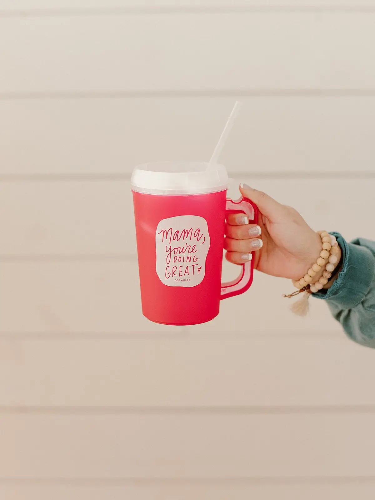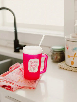 Gift Idea: Dropping off a baby gift for a new mom? Be sure to include this chugger mug to let her know you’re thinking of her too. Here are a few deets you might want to know! -These made-in-the-USA cuties are BPA FREE & double-wall insulated -They hold 22 oz. of whatever your heart desires to sip on -This style has a matte finish with an extra large handle + ribbed thumb grip -These are dishwasher safe, BUT hand washing is highly recommended to prevent fading -clear straw included.